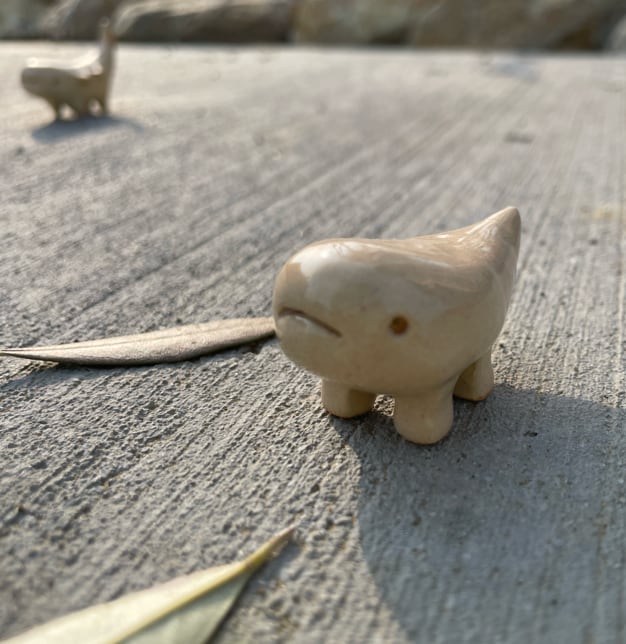 夜の森に住む怪獣『よのまる』手のひらサイズの陶器でできています。